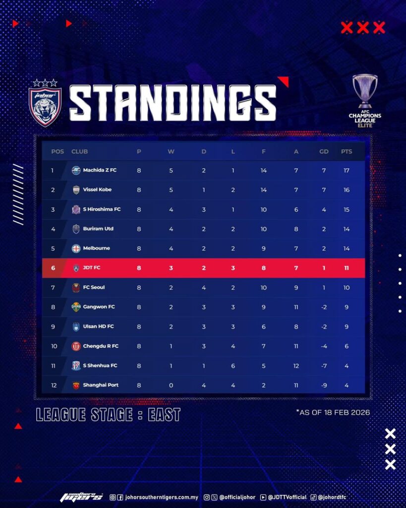 Lebih signifikan, di bawah JDT terdapat kelab dari liga yang suatu ketika dahulu dianggap terlalu sukar untuk dicabar iaitu FC Seoul, Ulsan HD serta wakil China seperti Shanghai Shenhua dan Shanghai Port.